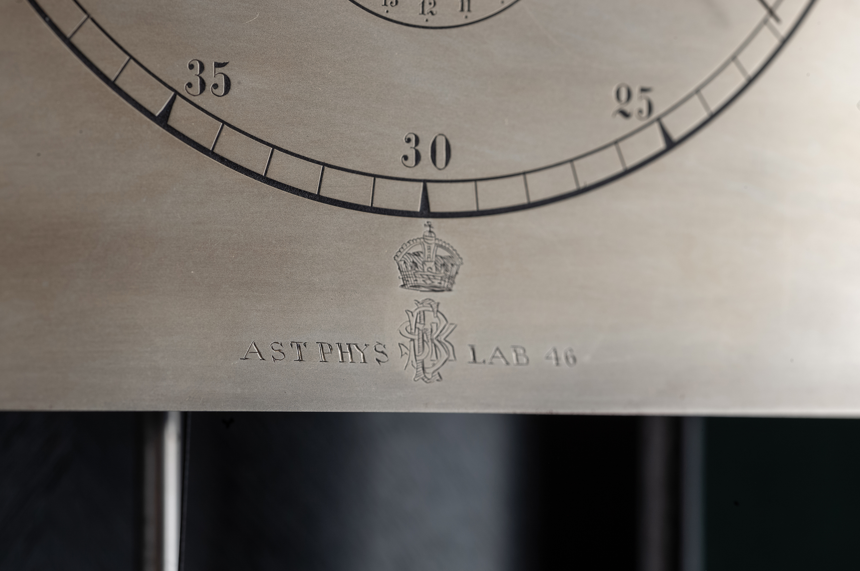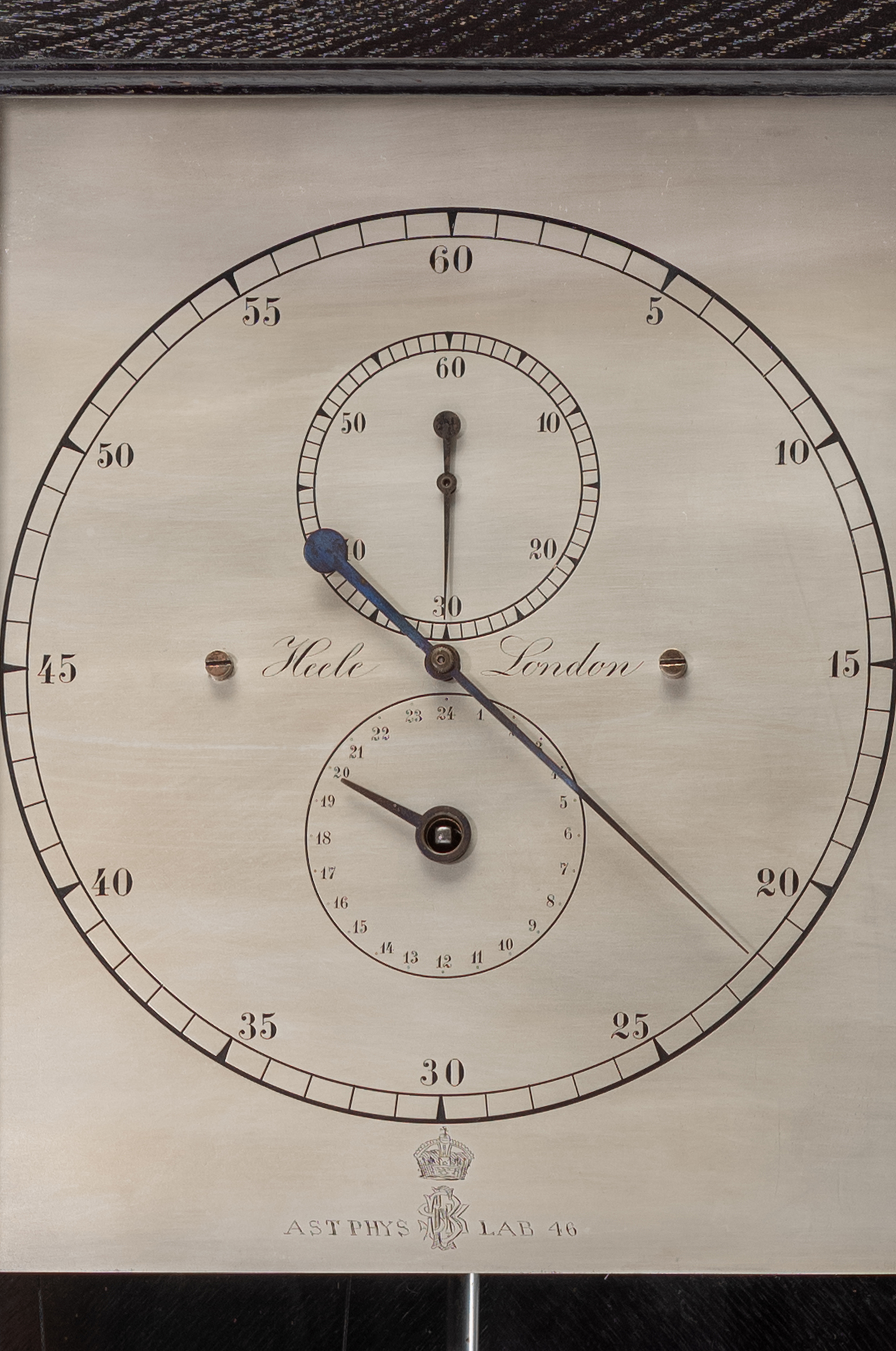 Verzilverde wijzerplaat gesigneerd Heele London Astro Physics Labo 46.