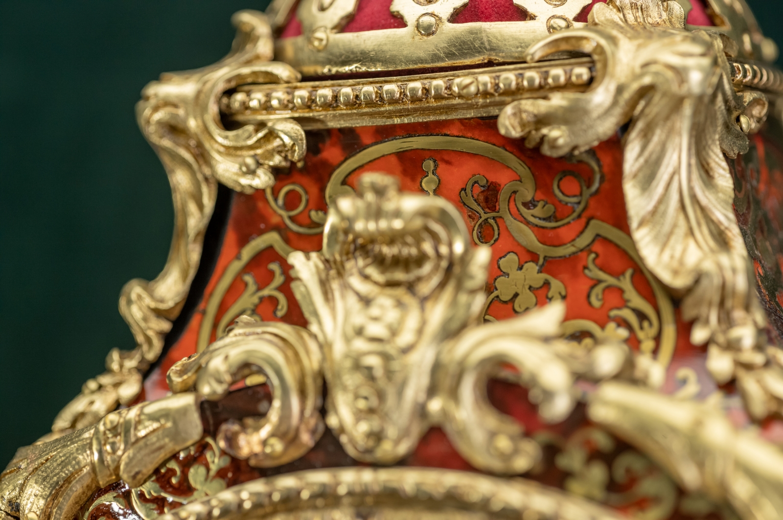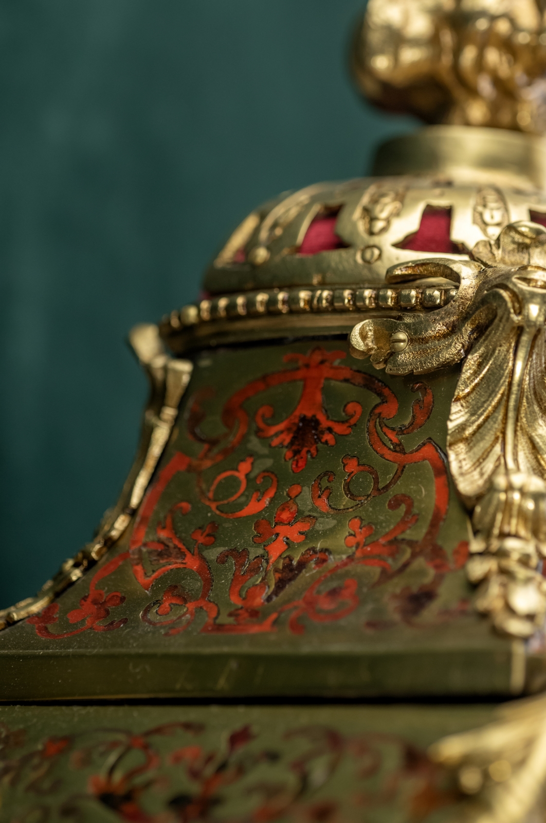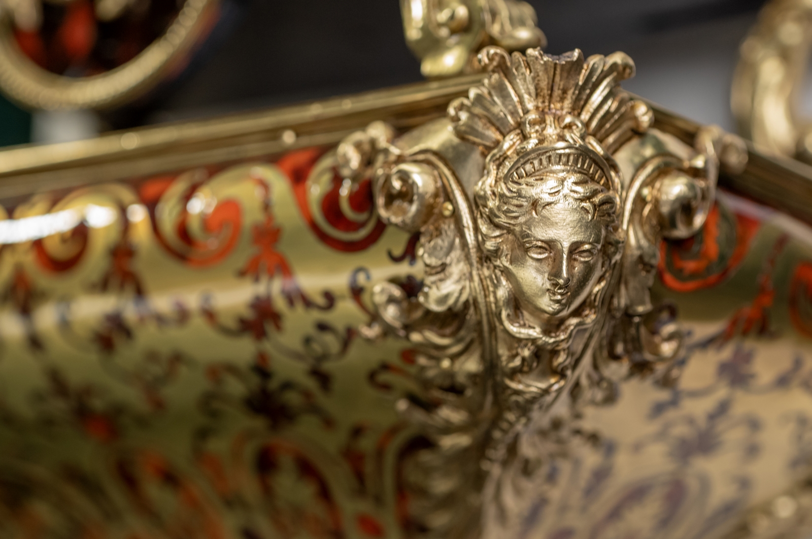 Cartel met Schildpad en messing ingelegde gepolitoerde kast met messing ornamenten.