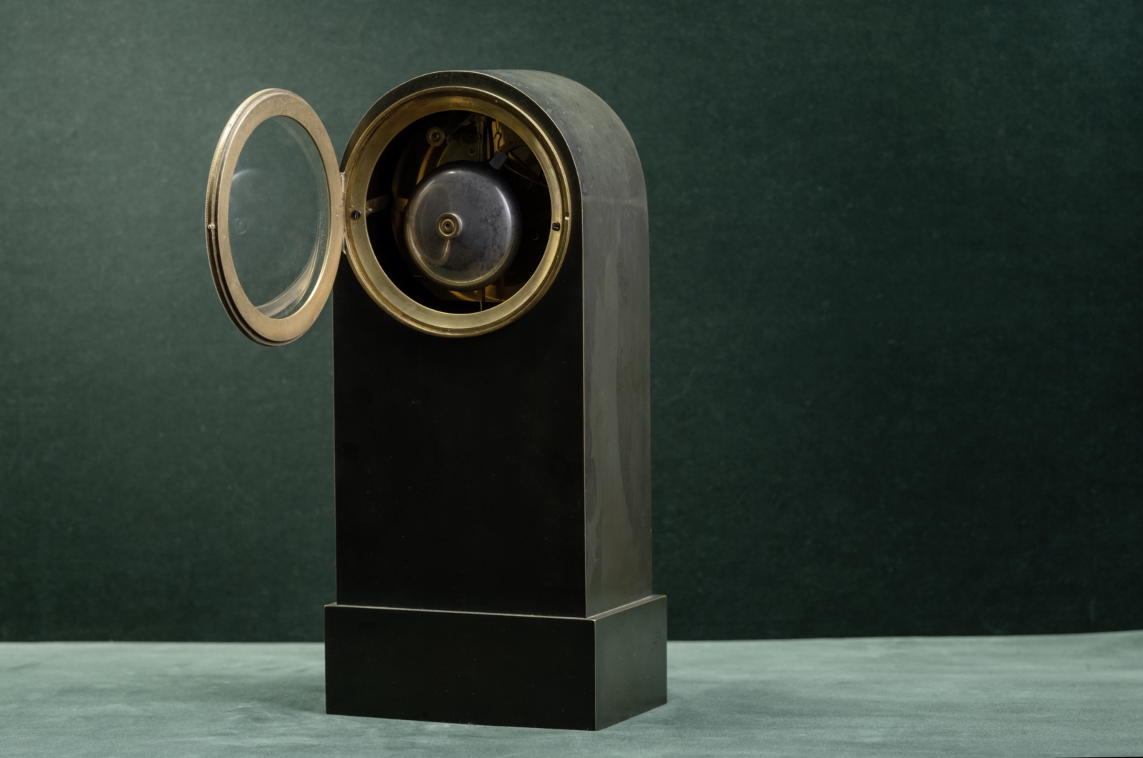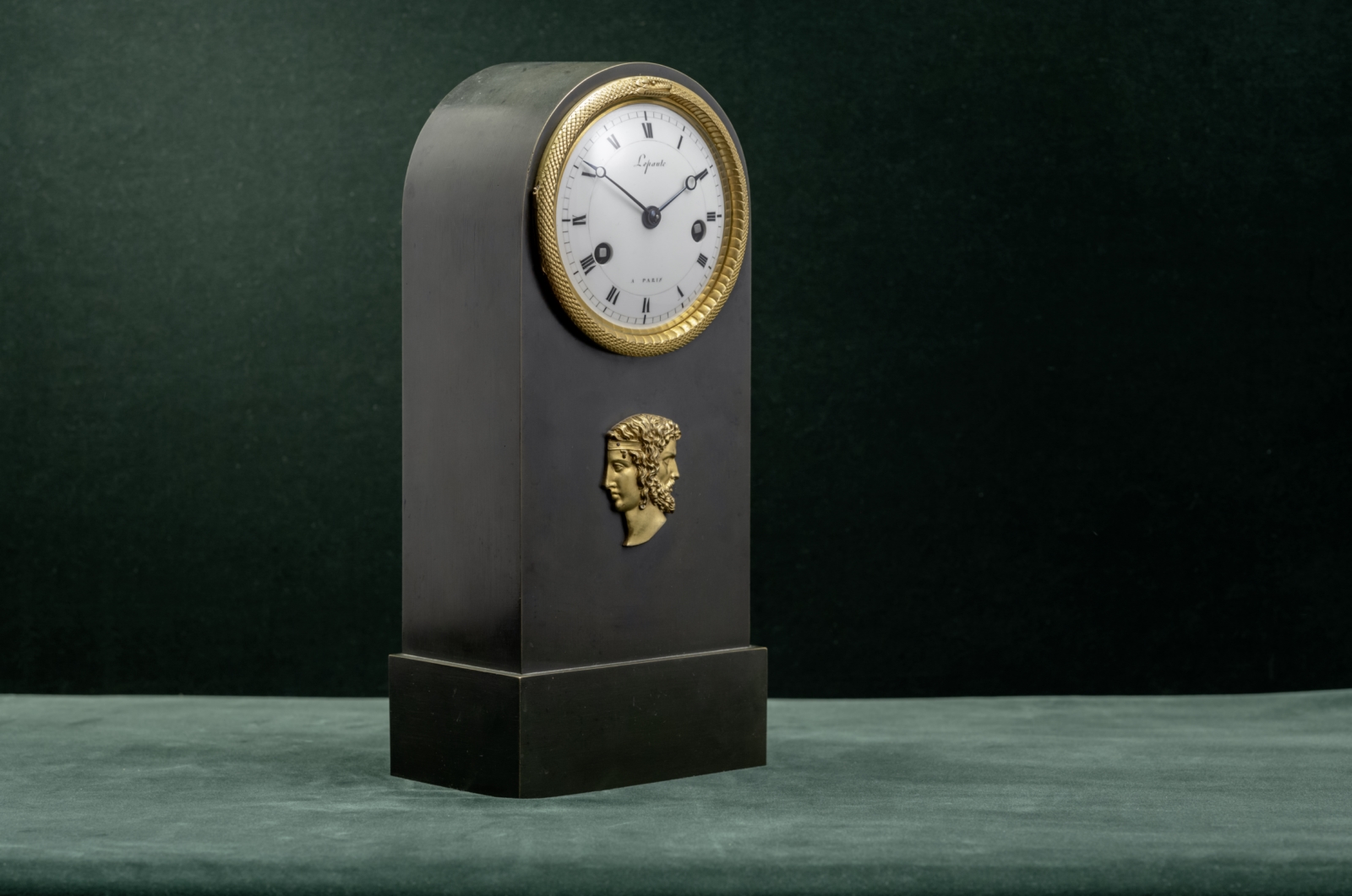 De gebronsde messing kast heeft vergulde ring en ornament. De emaillen wijzerplaat heeft asymmetrische opwindgaten. Het is een uurwerk met gaandwerk en slagwerk dat de uren slaat op een fijn belletje. Ouroboros, de staart-bijter, symboliseert de eeuwigheid, de kringloop van het licht en de continuïteit van het leven.