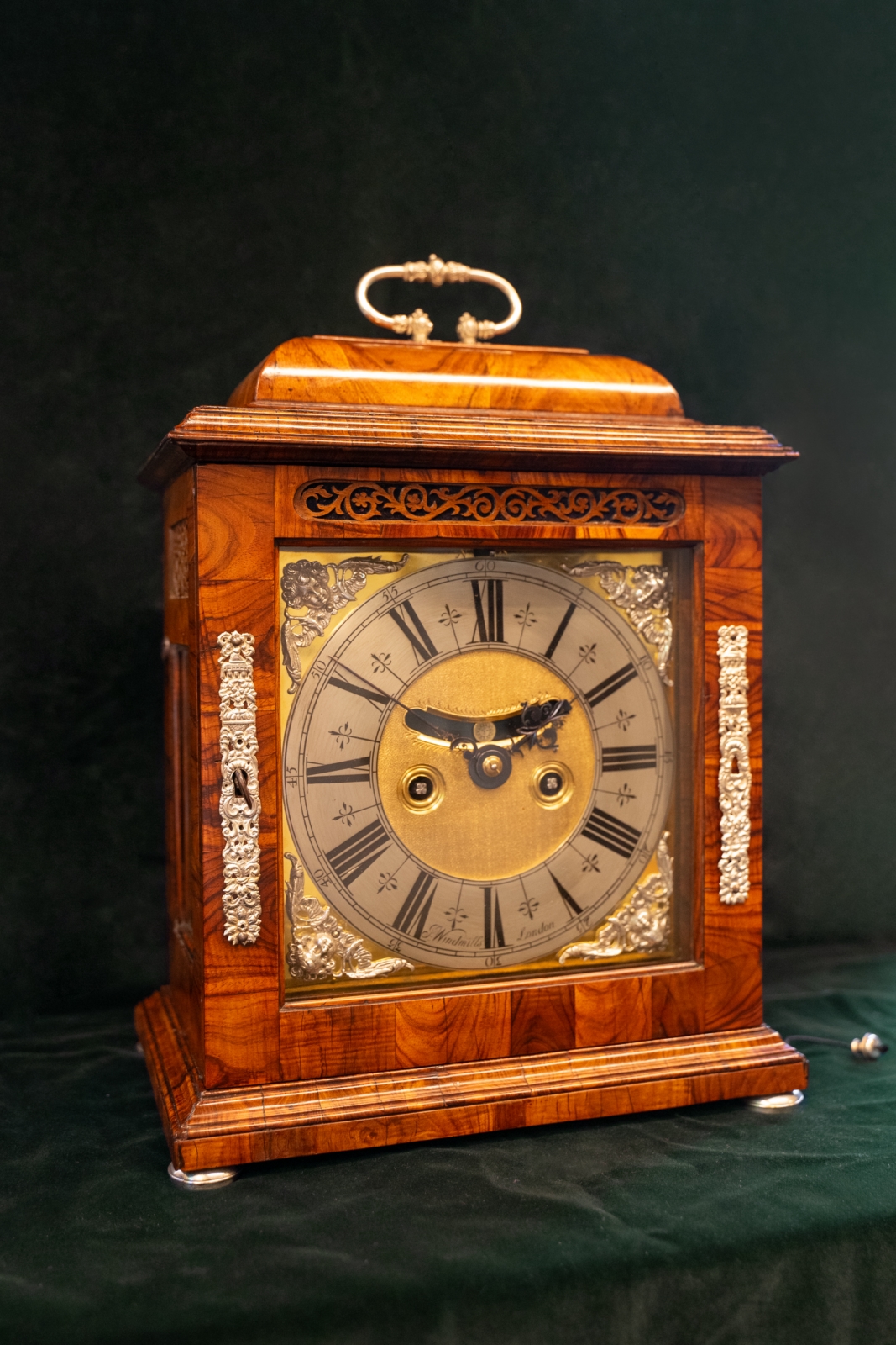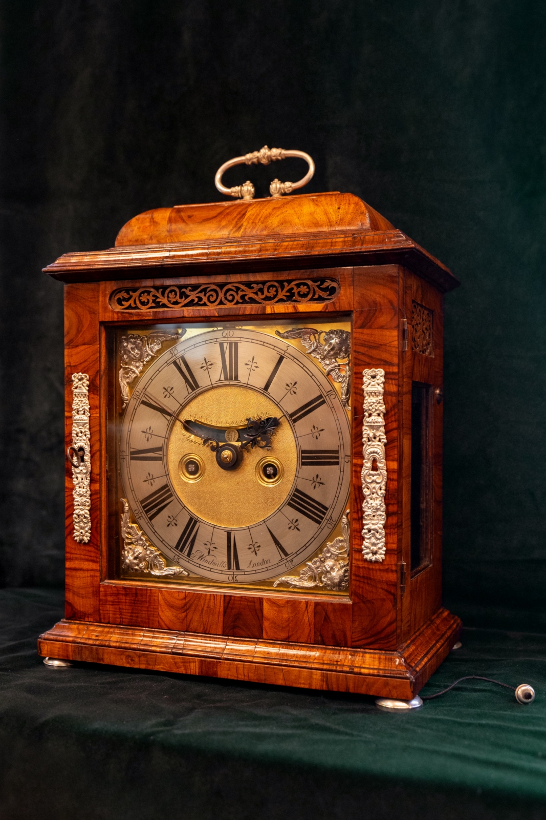 Joseph windmills a London te dateren rond 1695 Eiken met kingswood gefineerde kast. Massief zilveren ornamenten en pootjes op de kast en op wijzerplaat. Vergulde wijzerplaat met verzilverde cijferring.